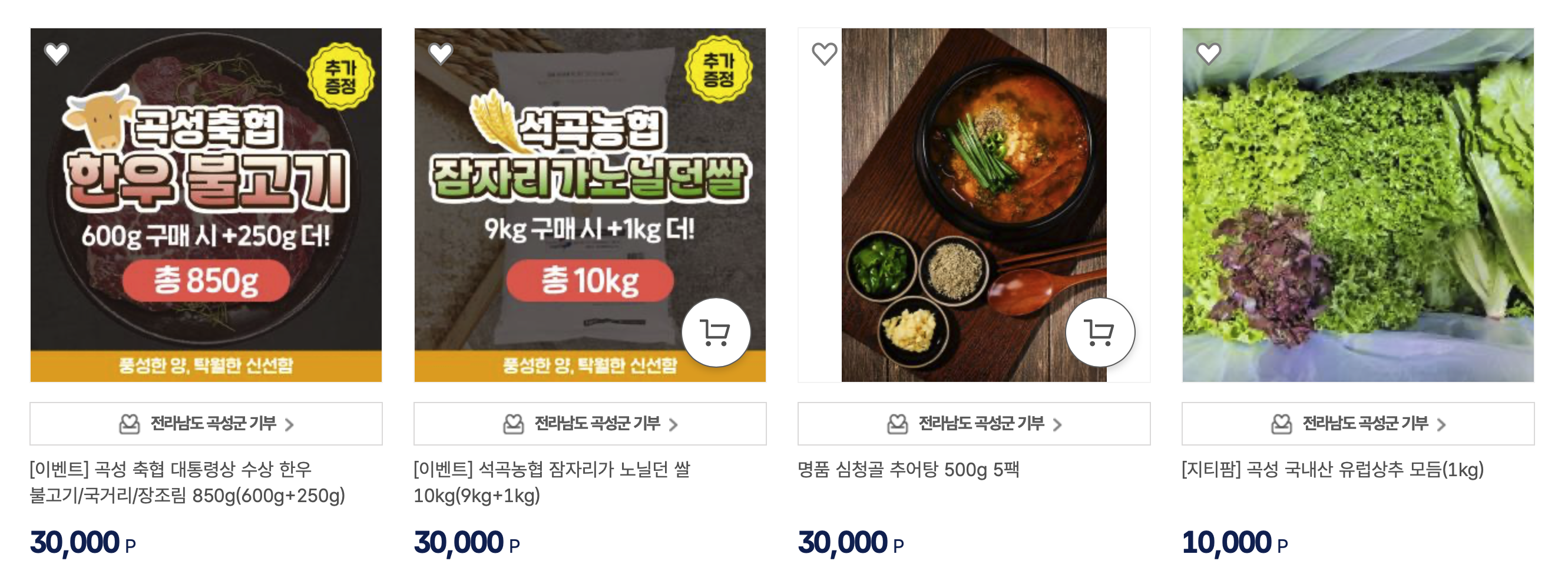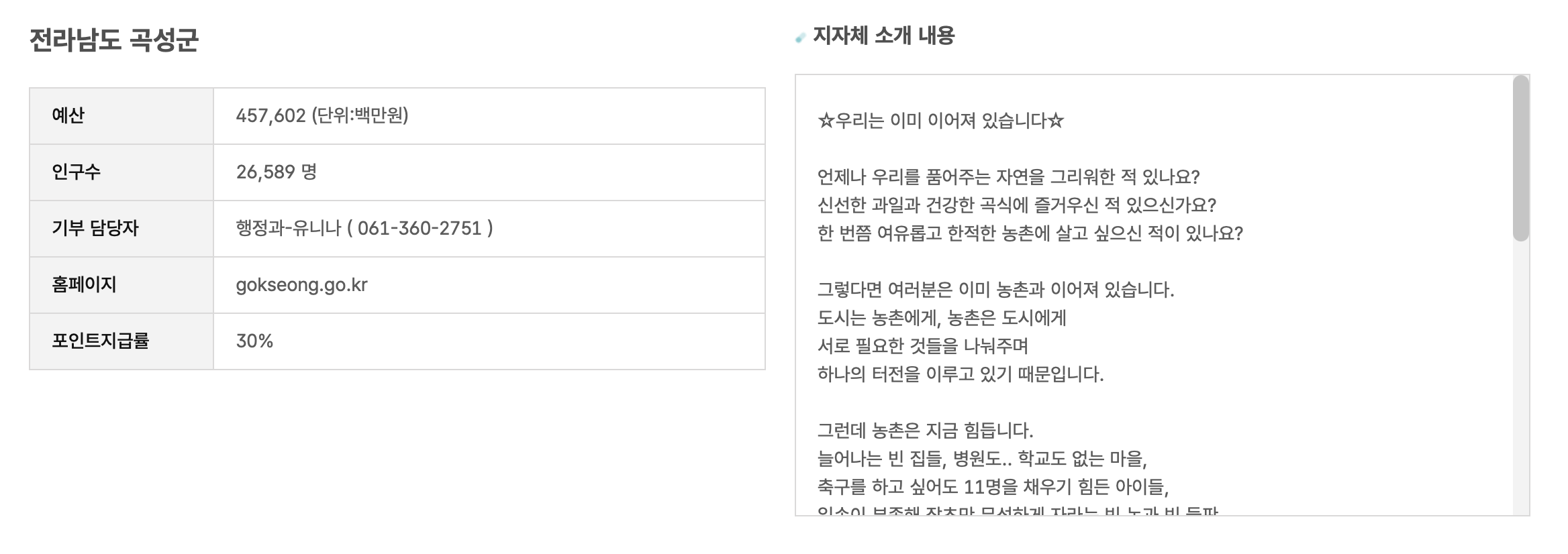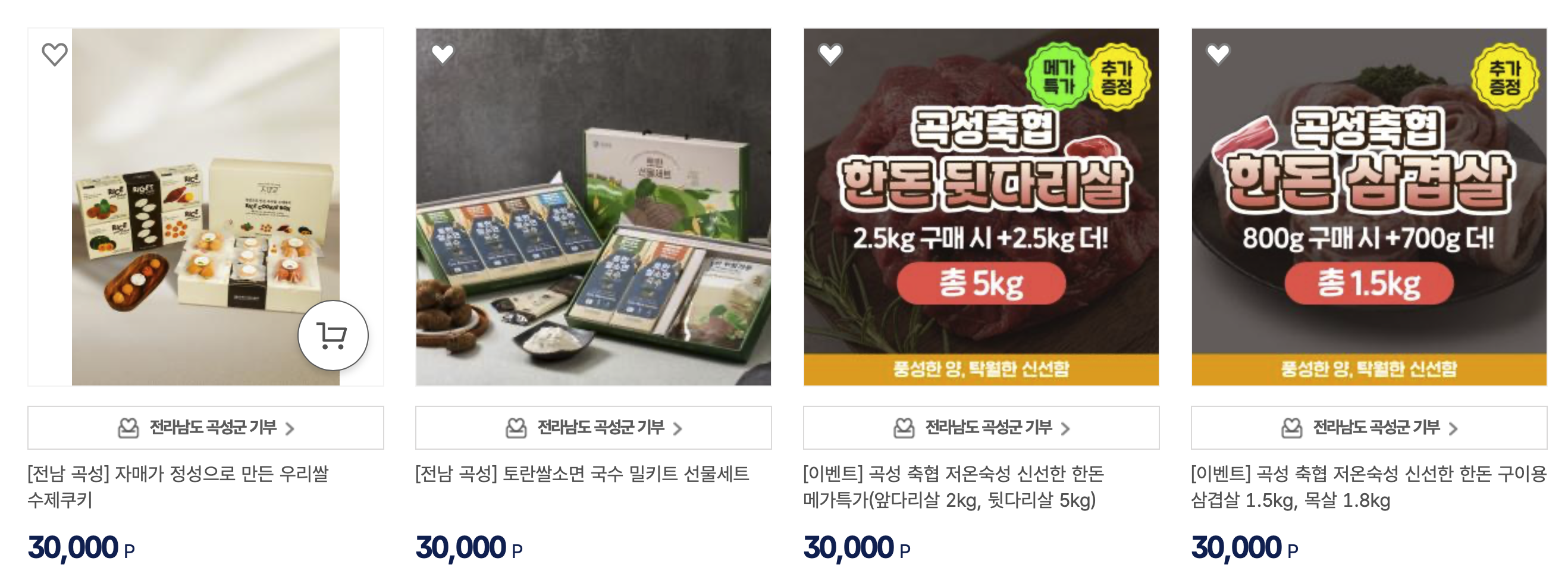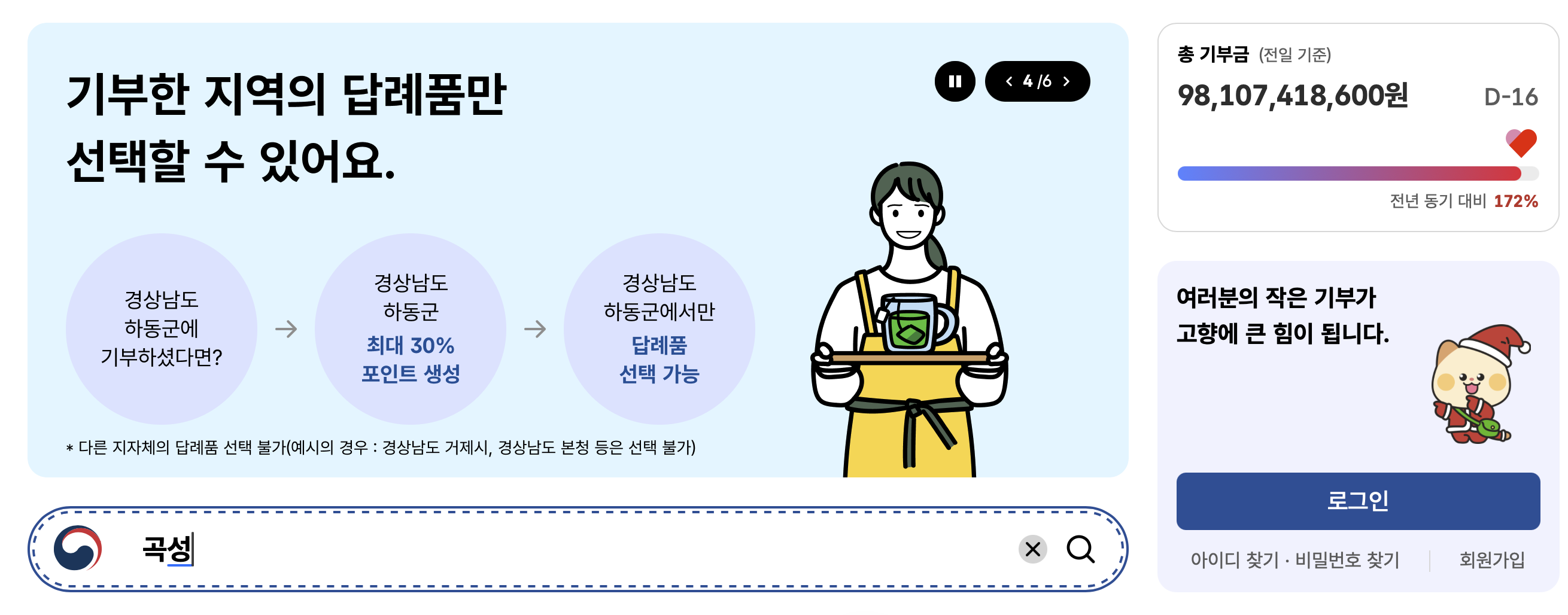 • 답례품은 기부금의 30% 이내만 선택 가능
