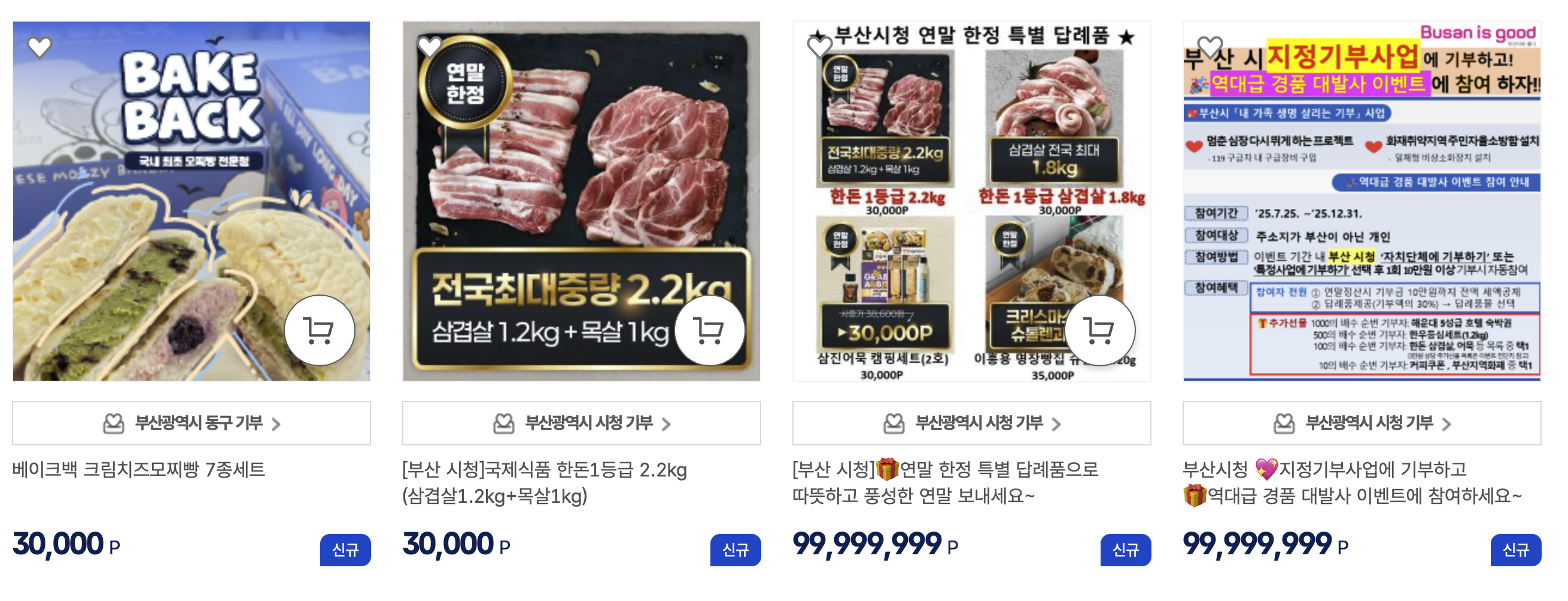 • 부산 거주자는 부산 기부 불가 (타 지역만 가능)