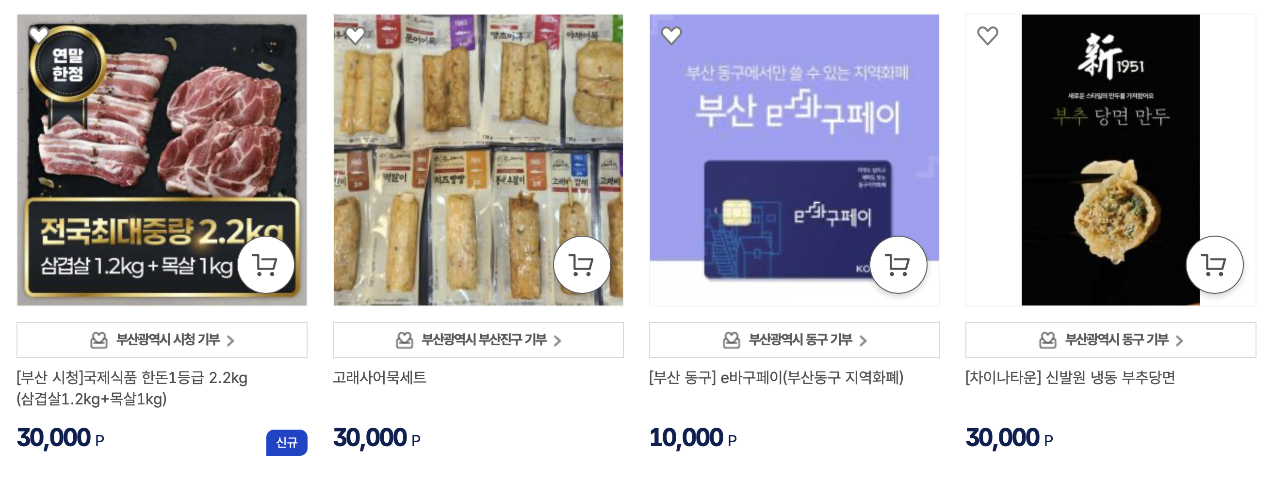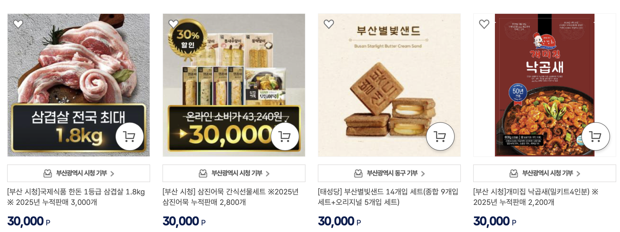 부산 기부 시 지역 특색이 담긴 다양한 답례품을 받을 수 있습니다.