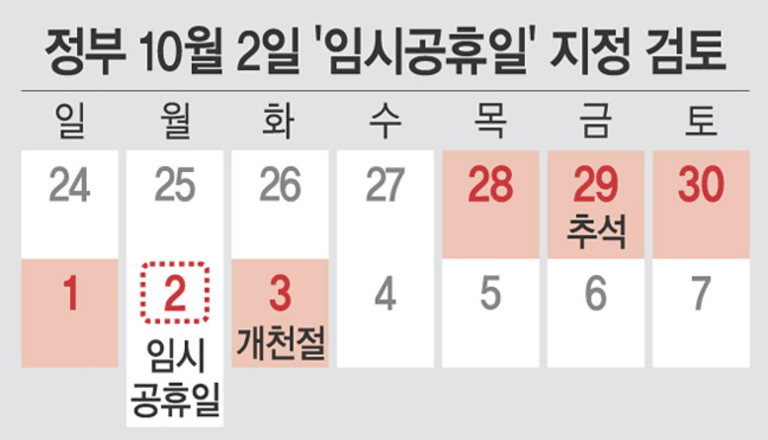 황금연휴 가능 추진? 10월 2일 임시공휴일 추진 검토
