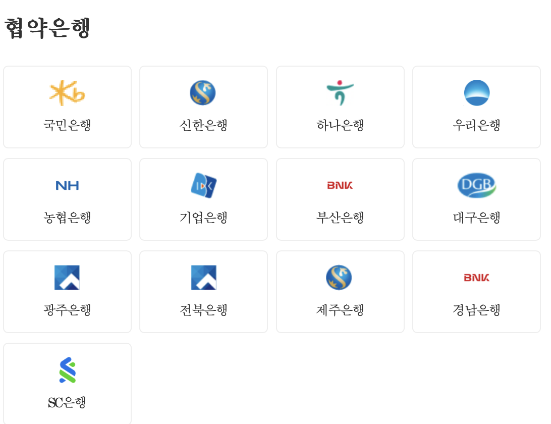 3. 전국 은행으로는 신한은행, 하나은행, 우리은행, NH농협은행, KB국민은행, 기업은행이 해당이 됩니다.
