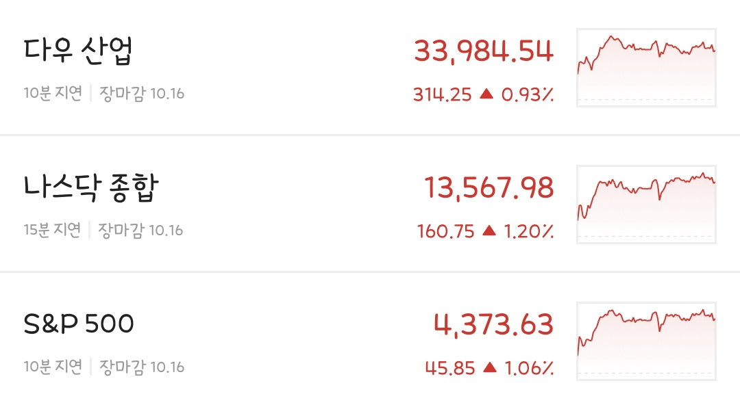 이 발표가 전날인 나스닥, 다우지수도 상승을 하였습니다.