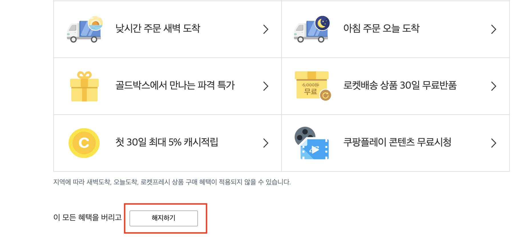 해지를 하게 되어도 남아있는 날까지 또는 다음 달 결제일까지는 와우 멤버십 혜택을 받을 수 있는 점 참고하시기 바랍니다.