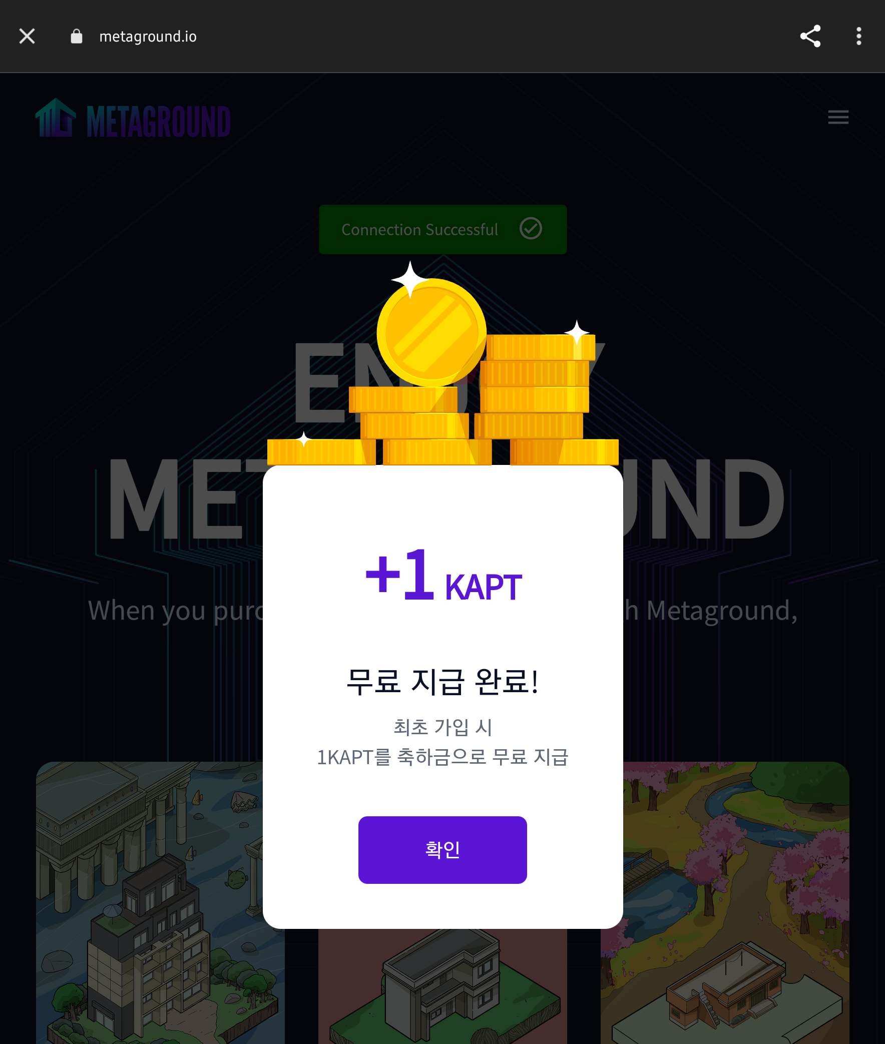 이렇게되면 완료가 되는데요 코인  KLAY 또는 KAPT 코인을 가진 분들이라면 가상 부동산 투자도 앞으로 괜찮을듯 보입니다.