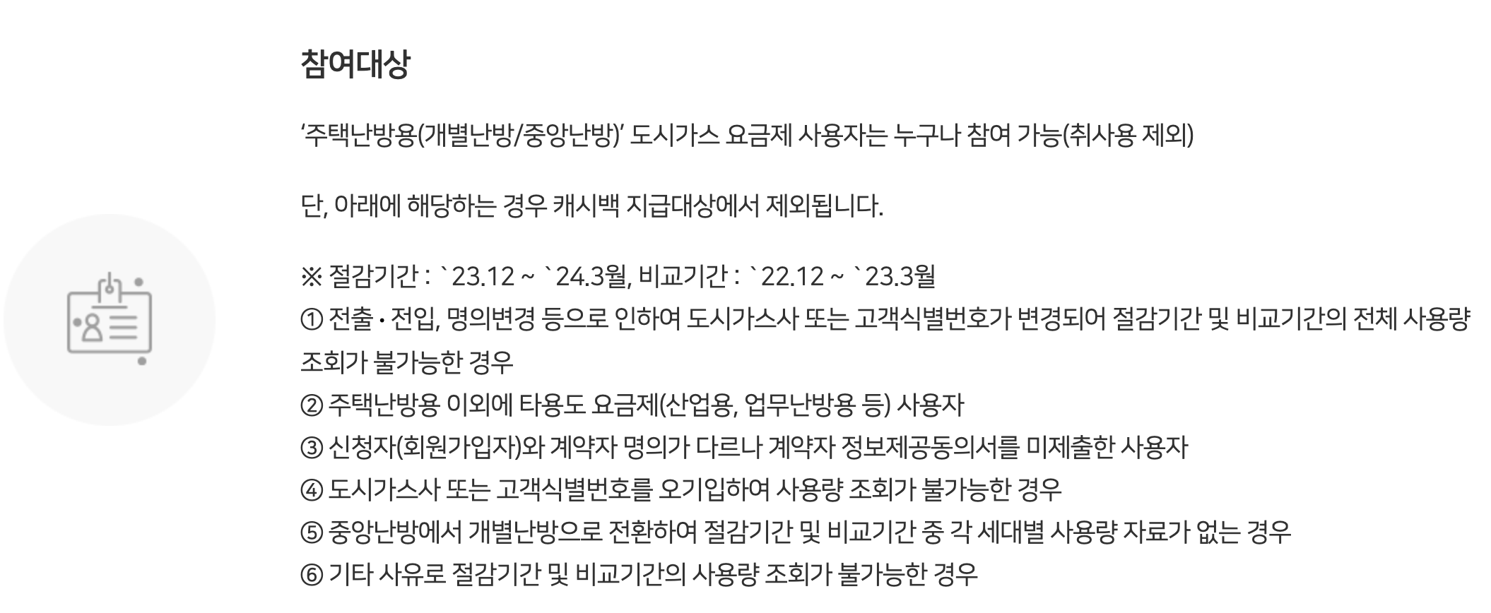 참여대상은? 주택난방용 도시가스 요금제 사용자는 모두 해당이 됩니다. 단, 취사용은 해당이 되지않습니다.