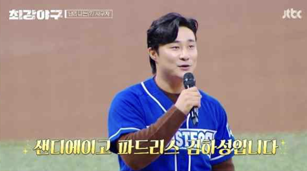 바로 메이저리거인 샌디에이고 파드리스 소속 김하성 선수가 시구자로 출연하여 최강야구 선배들을 응원하였다.