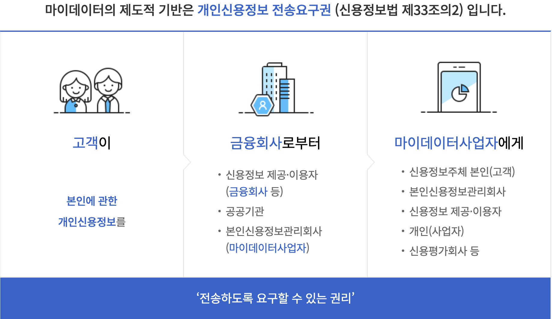 마이데이터 정의는 아래 사진으로 확인하시면 보다 더욱 쉬운 이해가 될 것으로 보입니다.