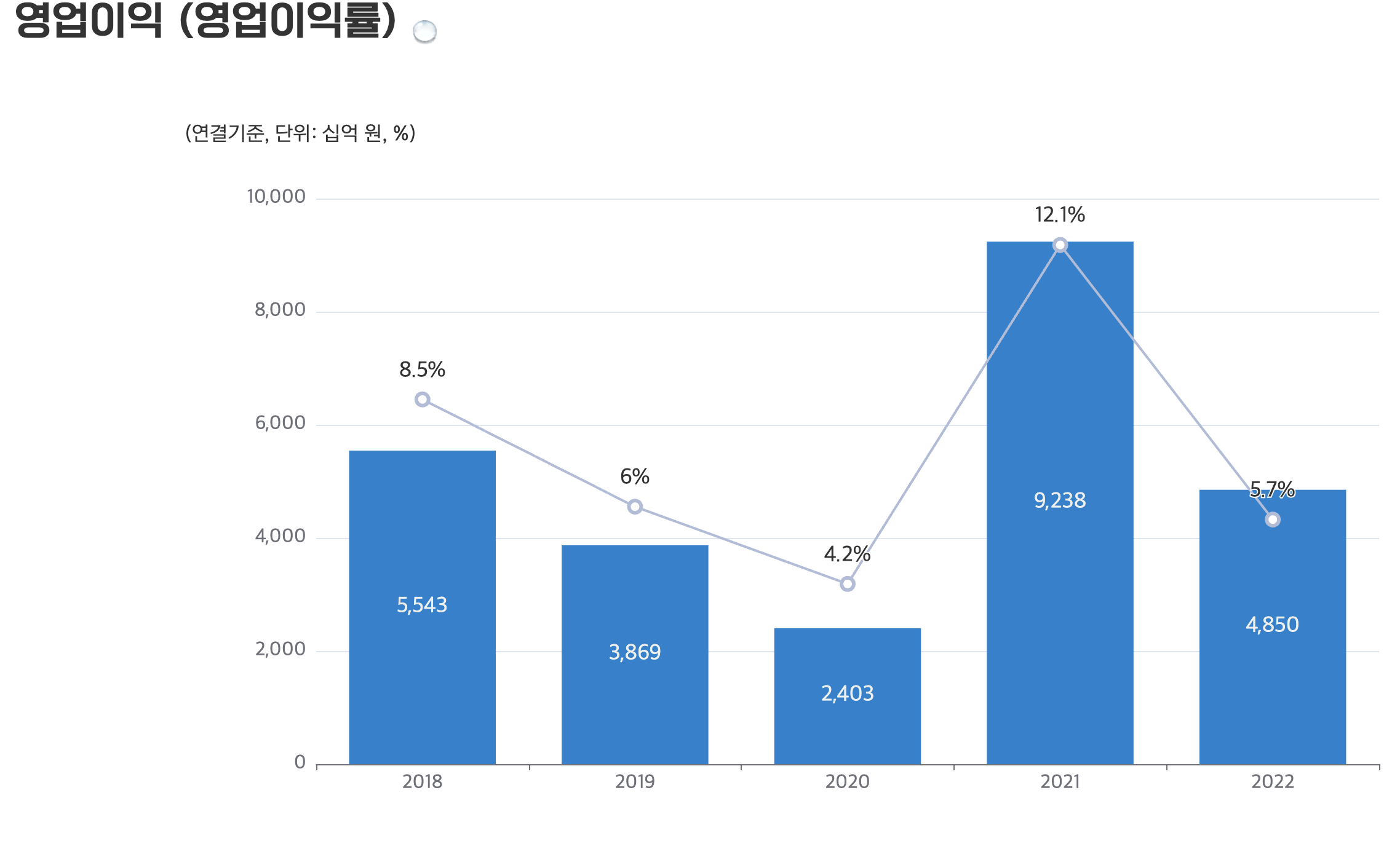 매출액과 영업이익률 (출처:포스코홀딩스 홈페이지)