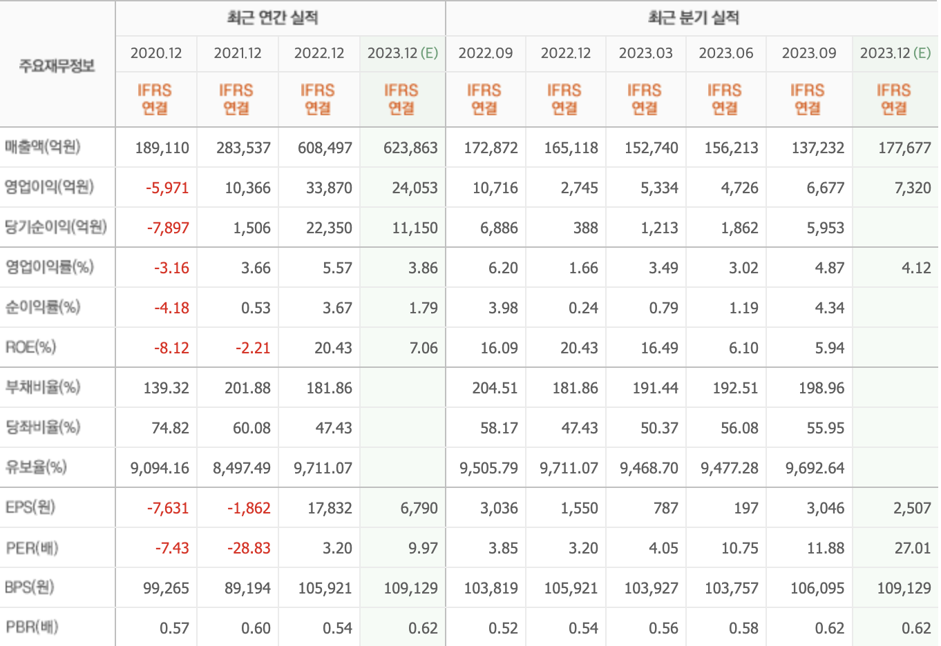 HD현대는 1주당 67,100원이지만, BPS는 1주당 10만원이 넘기때문에 아주 수익성과 재무건전성이 높고 투자할만한 가치가 있는 기업이라고 생각하시면 됩니다.