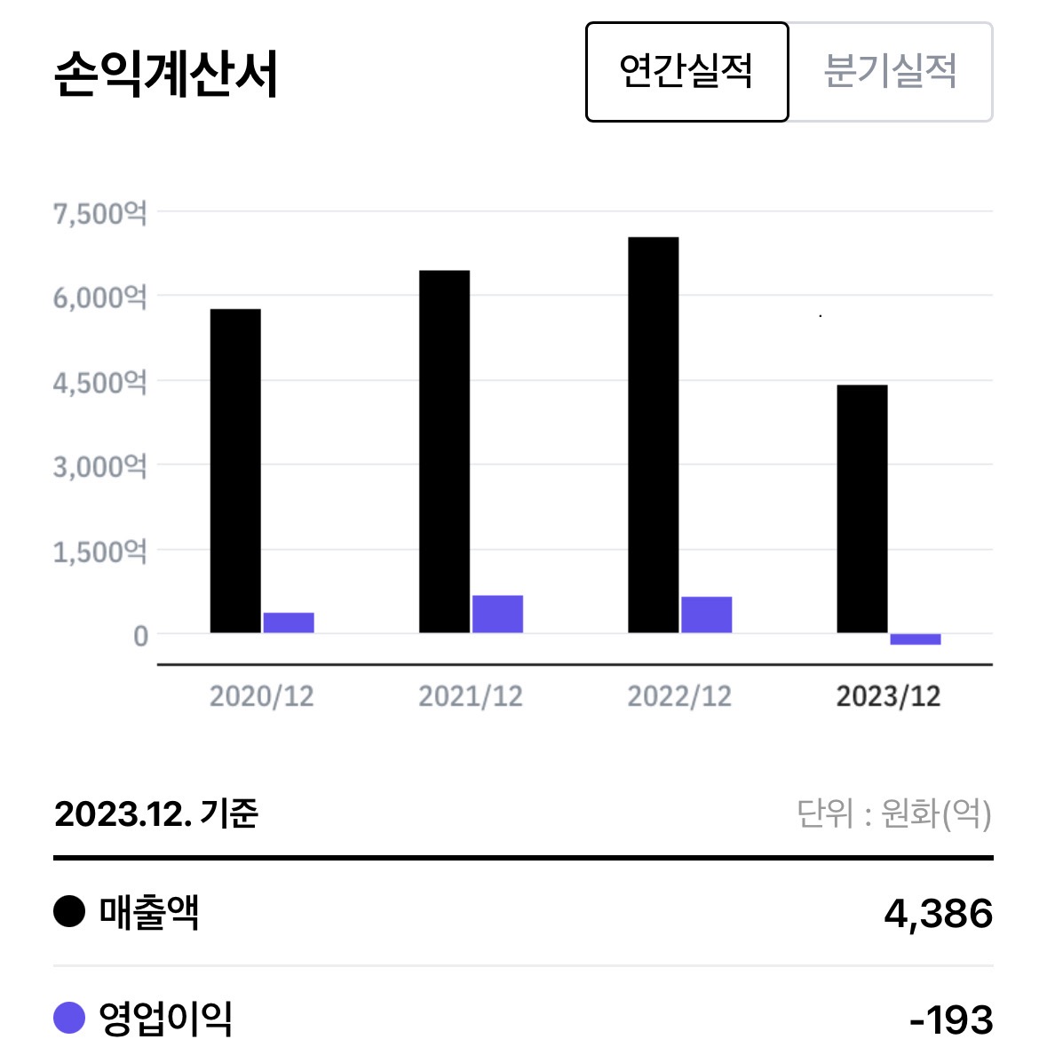 SFA 반도체는 2020년부터 매출액을 보면 기술력에 비해서 많은 성과가 뚜렸하게 나오는 기업은 아니며, 영업이익도 적자전환으로 실적으로만 보았을때에는 그리 좋지 못하다.