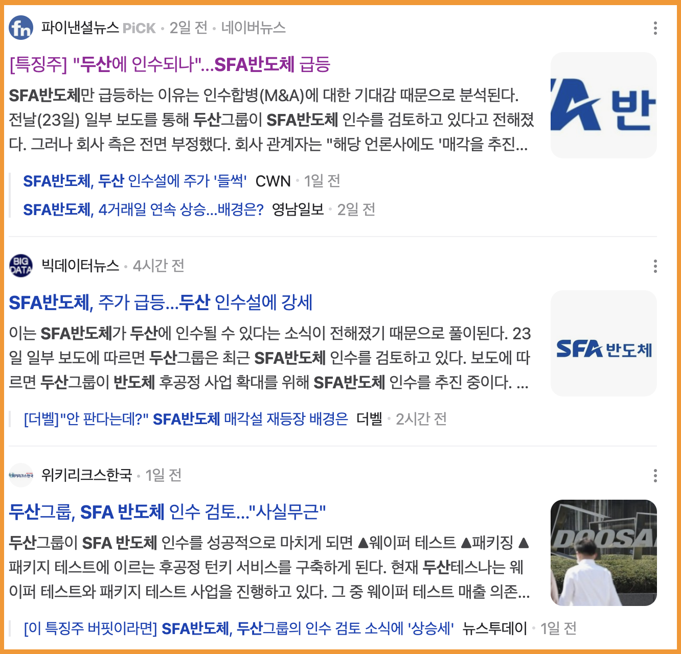 2. 두산 그룹 SFA반도체 인수 이슈