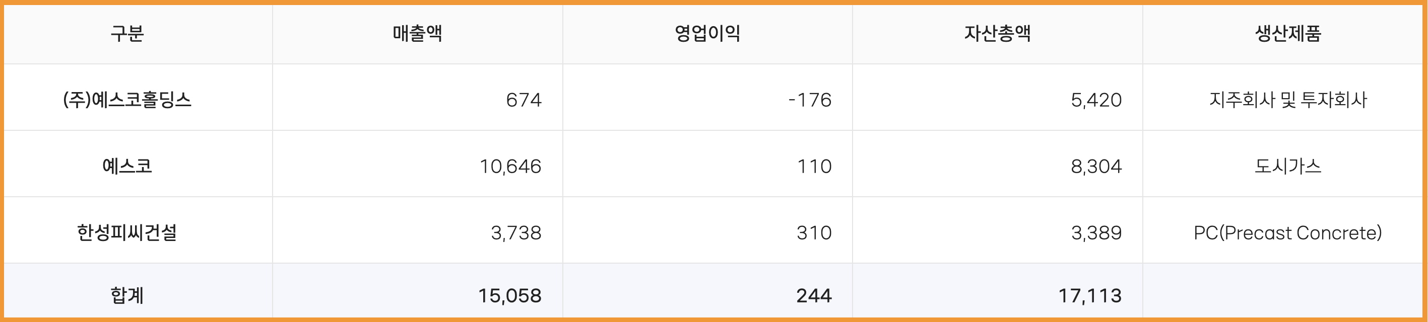 > 예스코, 실적 보러가기