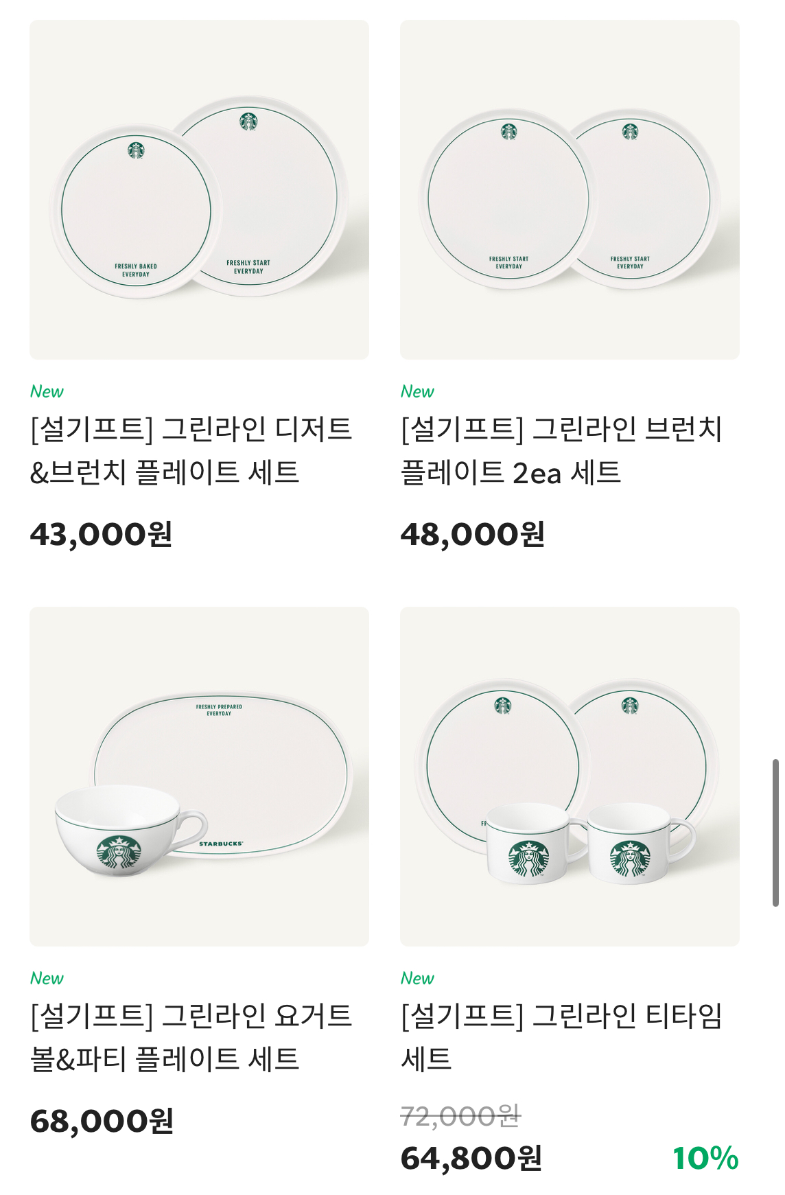 머그잔, 그래놀러, 트래블러, 텀블러 상품이 아닌 스타벅스에서도 접시 브런치 플레이트 세트들을 선보이며, 스타벅스만의 아이덴티티를 느낄수있는 상품들이 많이 출시가 되었습니다. 멀리서 보아도 보이는 스타벅스 로고와 집에서 디저트와 함께 홈카페를 즐길수 있도록 플레이트 세트들이 보이며 기프트 상품들도 조만간 많은 품절이 될것으로 보입니다.