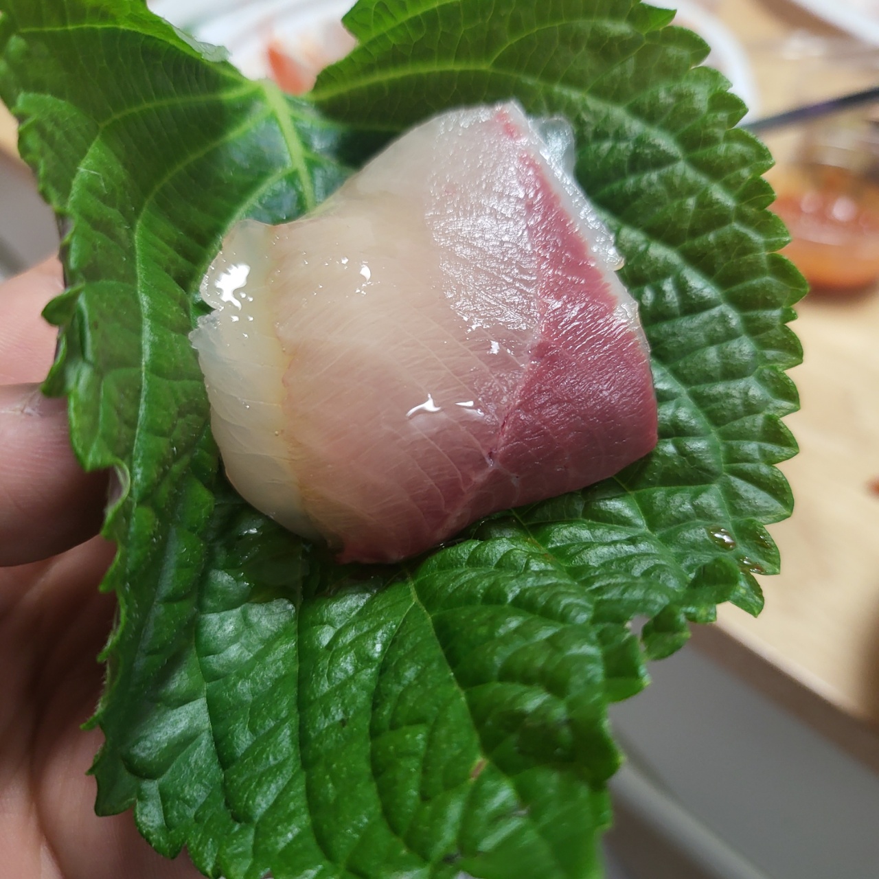 향긋한 깻잎에 방어 한점 올려서