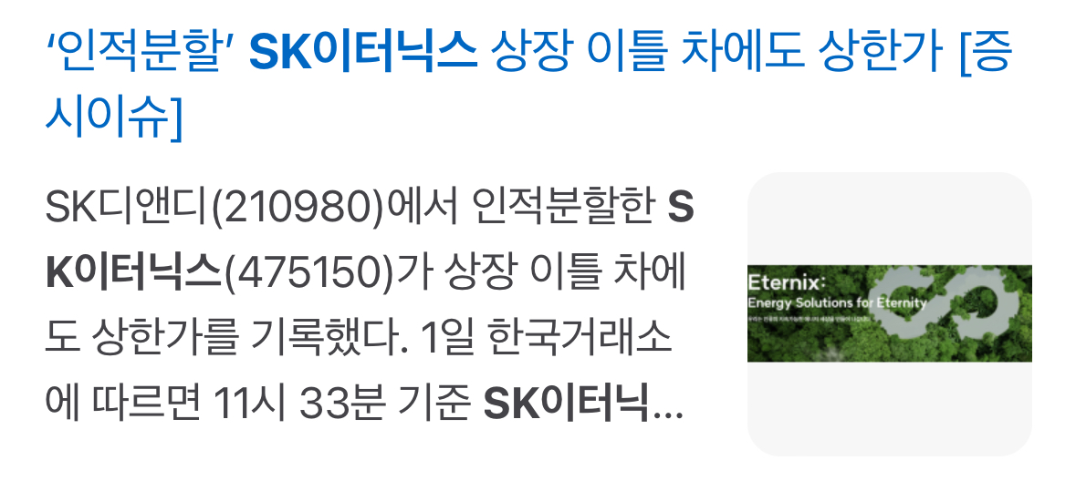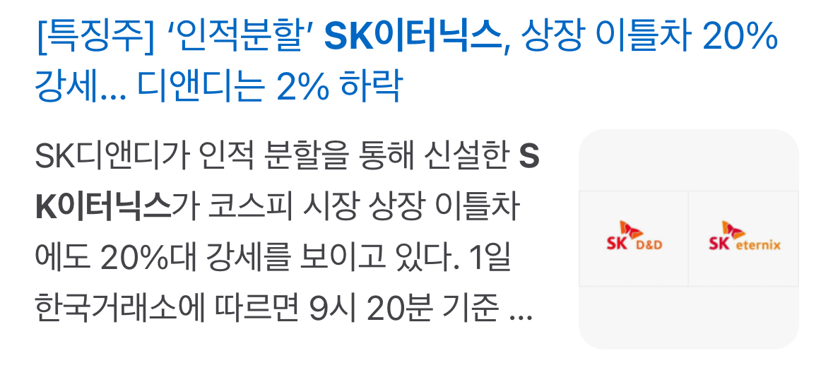 SK이터닉스 인적분할과 기업 IR을 확인하실 분은 아래를 클릭해보시기 바랍니다.