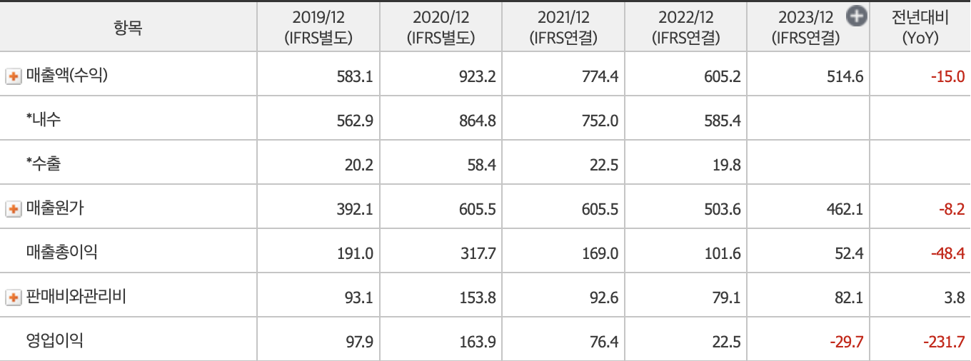 에코앤드림의 실적은 2019년부터 확인을 해보면 많이 증가를 하였다가 다시 하락을 한 것으로 보입니다. 하지만 새만금 부지 4.5만 평을 확보하여 1800억 원의 투자를 하여 현재 2021년 2022년 2023년 3개년의 실적은 다소 하락한 것으로 보이지만 새만큼 부지 공장과 청주공장을 가동하면서 올해가 더욱 많이 기대가 되는 기업입니다.