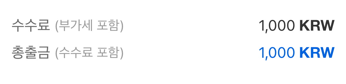 업비트의 입금 수수료는 무료이며, 출금 수수료는 1,000원이 발생하게 됩니다. 부가세 포함된 수수료가 1,000원이며 출금을 할 때 예수금에서 수수료를 뺀 금액만 출금이 가능하며, 출금이 완료가 되면 본인의 케이뱅크 통장으로 입금이 됩니다.