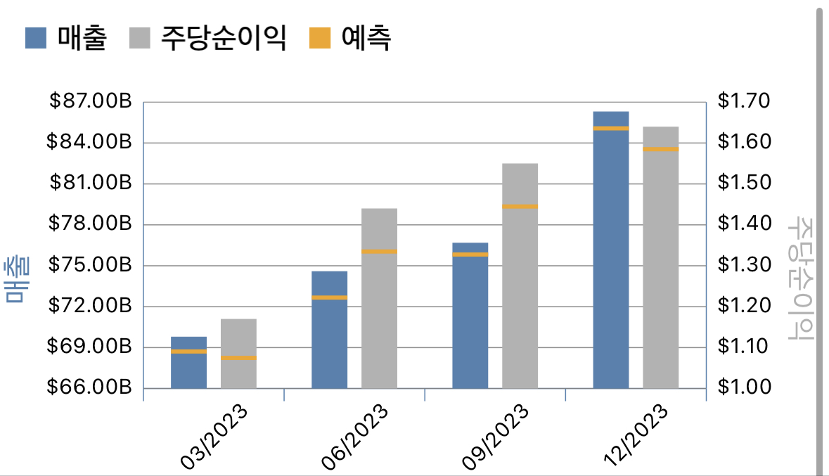 : 실적은 전년대비 순이익과 매출액이 더욱 늘고있으며, 코로나 이후 재택근무와 컴퓨터로 하는 업무가 많아지는 만큼 더욱 많은 매출과 이익이 늘어나고 있다. 앞으로 AI 개발에 대해 사업영역이 넓혀지며, 부분 유료화 또는 디지털연결에 대한 개선으로 해저케이블에 대해 투자를 하고 있으며, 이러한 투자로 2024년 2025년 실적 추정치로 보았을 때는 나날이 상승을 할 것으로 보입니다.