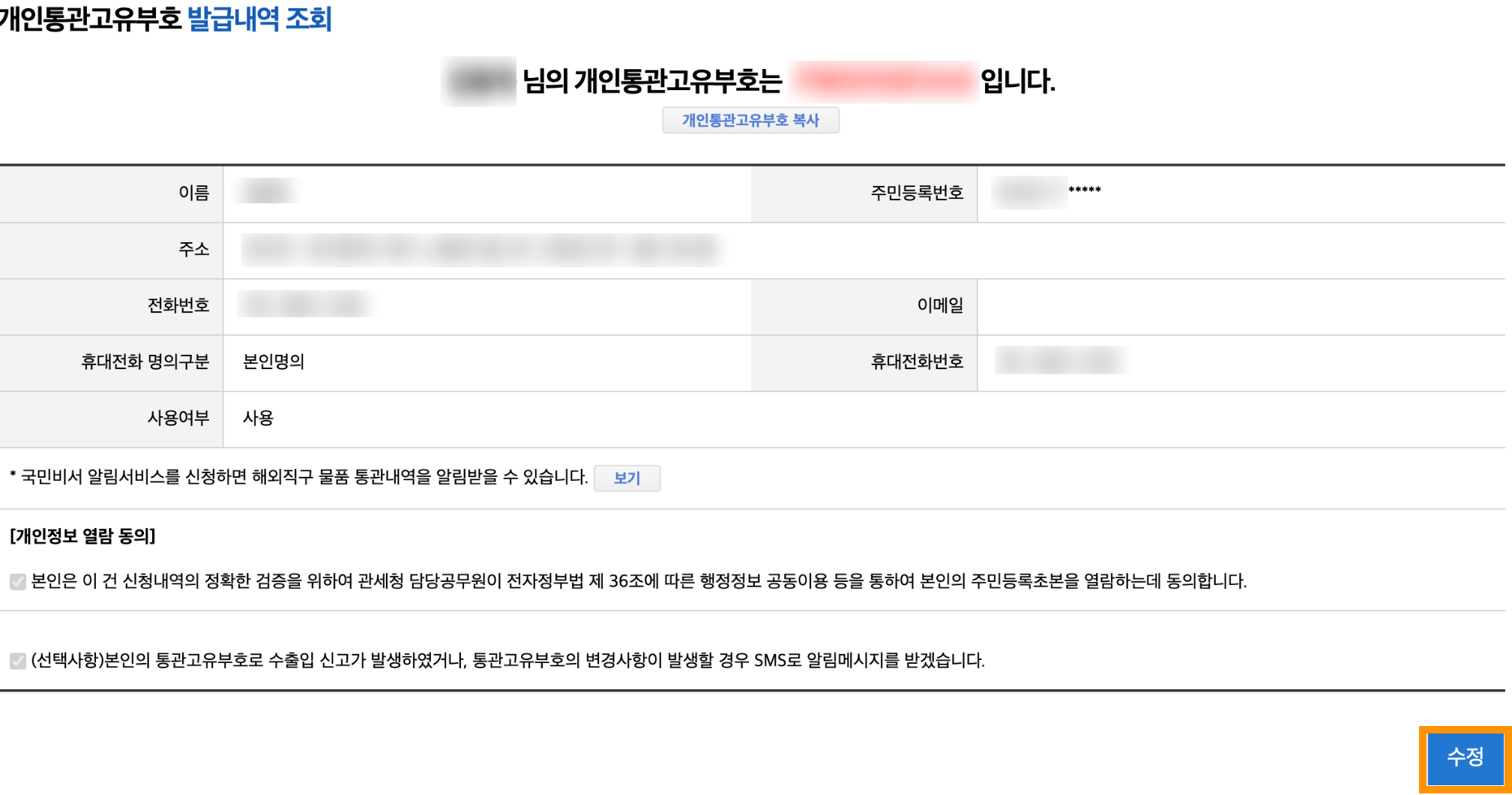 개인통관고유부호 재발급 방법