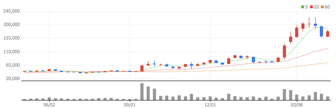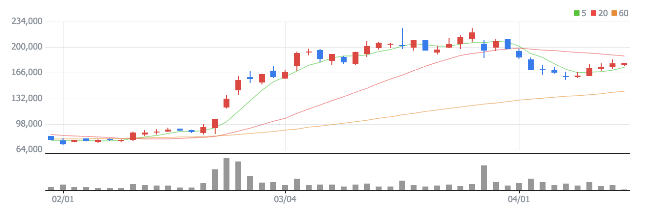 블록딜 쇼크인 알테오젠 대주주 중 1명인 정혜신 박사가 160만주를 3월 27일부터 대량으로 매도한 것으로 공시 발표를 하였습니다. 3월 27일의 알테오젠 주가는 52주 신고가를 찍고 내려온 200,000원정도에 매도를 한 것으로 보이며, 그 이후 계속 6거래일 동안 계속된 하락을 하였습니다. 그렇기에 많은 하락을 하였으며, 현재는 하락을 멈추고 상승을 할수있을지 아래 주가전망을 살펴보며 알아보도록 하겠습니다.