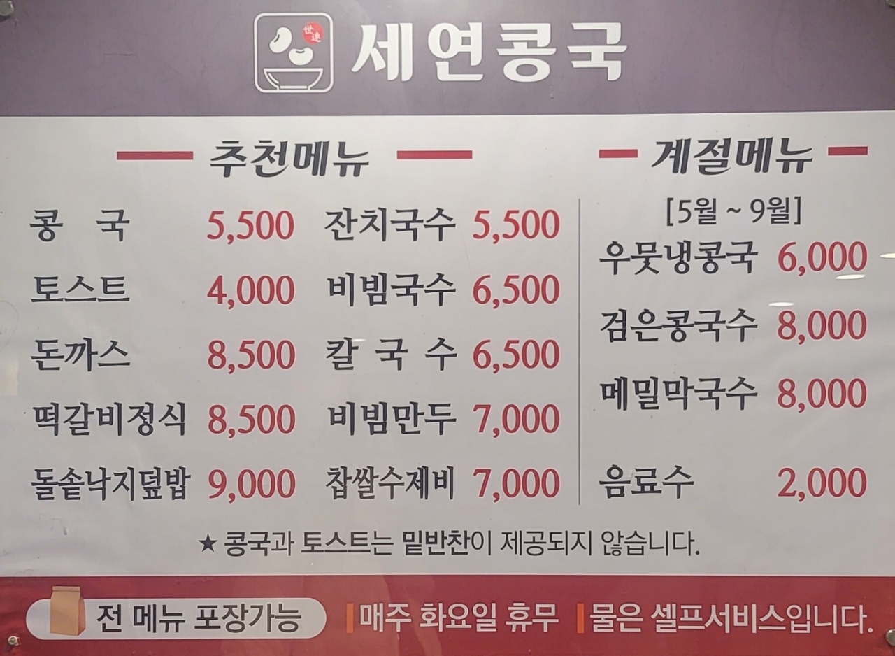 세연 콩국 메뉴판도 한 장 올릴게요!
