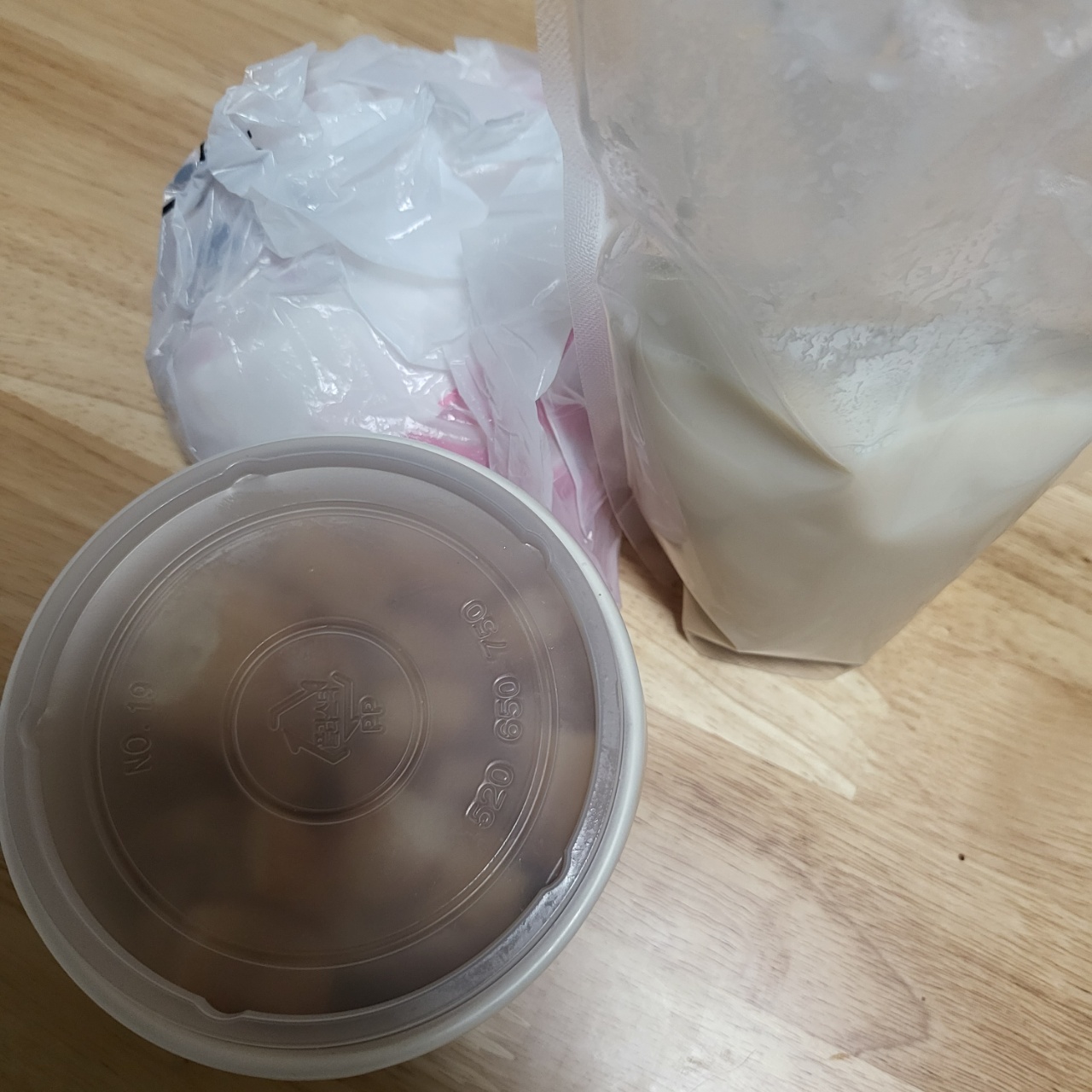 전 콩국 포장해왔지만 집에 바로 와서 먹기 위해 콩물을 데워왔어요!