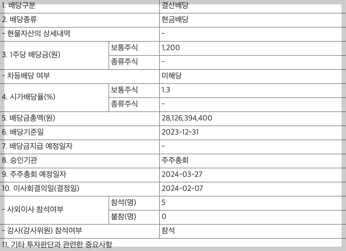 • 배당기준일 : 2023년 12월 31일