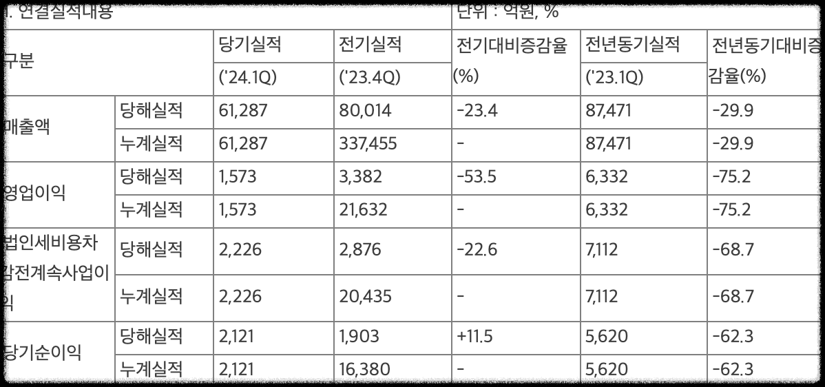 2024년 1분기 실적을 정리해 보았습니다.
