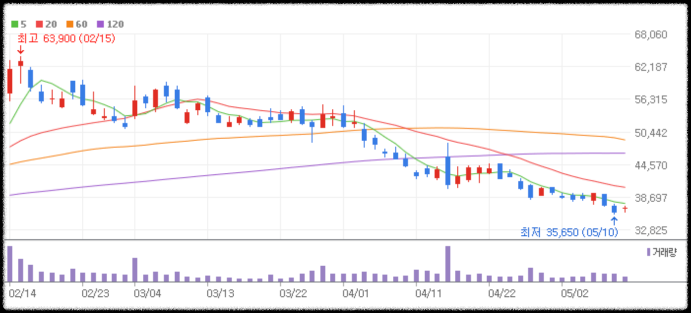 • 목표주가 : 58,000원-60,000원 (증권사 목표주가)