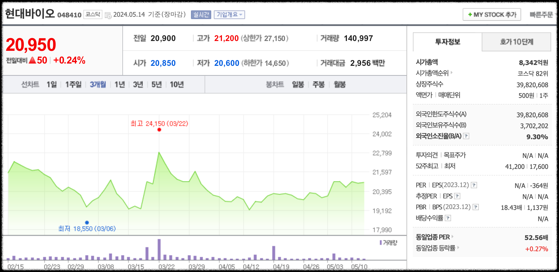 👉 현대바이오 2024년 1분기 실적 보러 가기