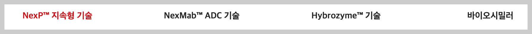 • NexP™ 지속형 기술 : 체내 지속성 증가와 단백질 고유의 활성 제거를 하는 기술.