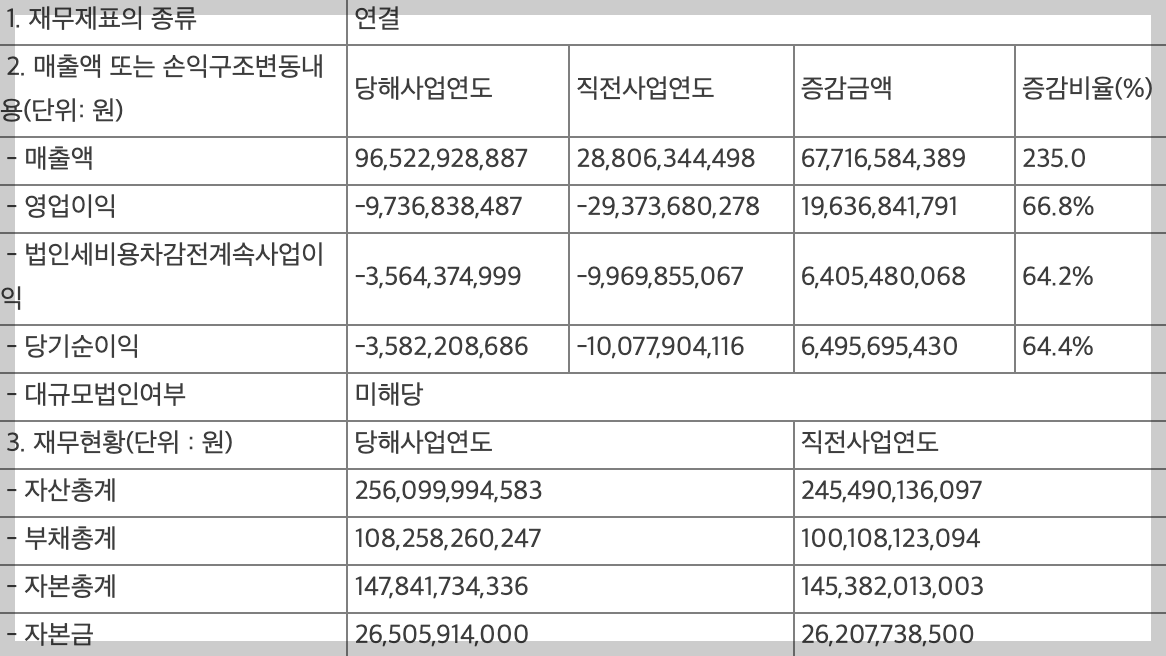 • 당기순이익 : -35억 원 (전년대비 +64.4%)