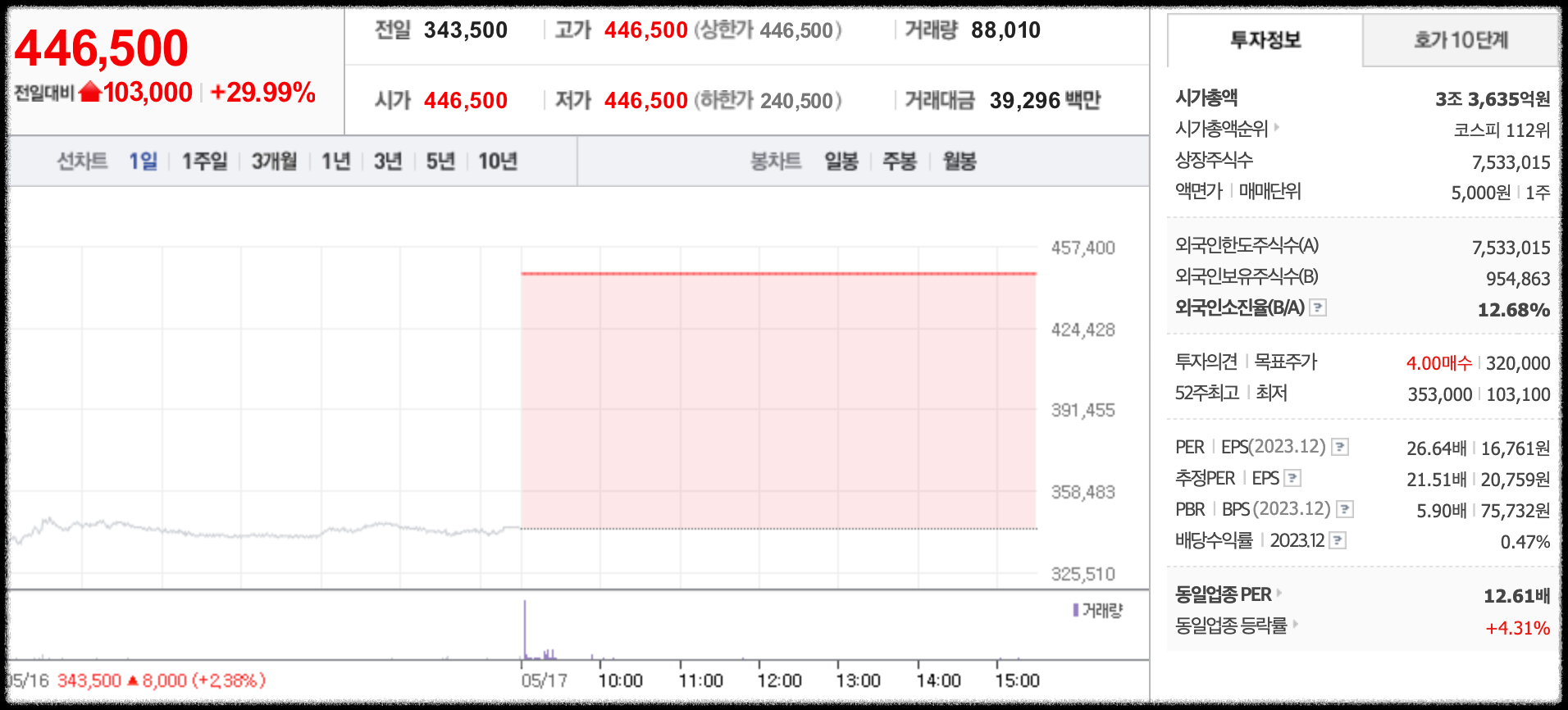 • 52주 최고가 : 446,500원