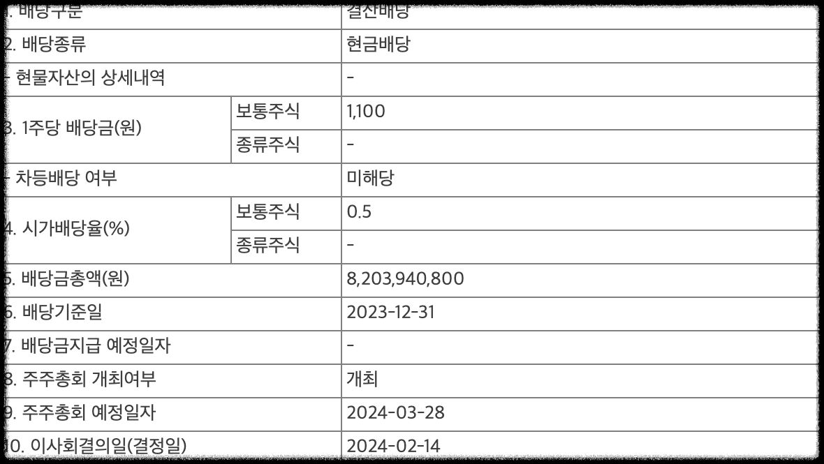 • 배당기준일 : 2023년 12월 31일