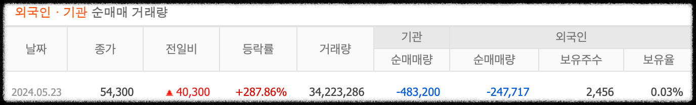 현재 상장을 한 뒤에 기관투자자와 외국인투자자들은 매도 포지션을 취하고 있으며, 공모가 대비 상승을 많이 하여 매도를 하고 있는 것으로 보여집니다. 금일 주가는 노브랜드 상장일인 5월 23일보다 더 상승을 하고 있기에 기관투자자와 외국인투자자들은 매도포지션을 유지할 것으로 보여서 이 부분이 이번 노브랜드의 주가에 영향을 줄 수 있는 투자포인트로 보아야 합니다.