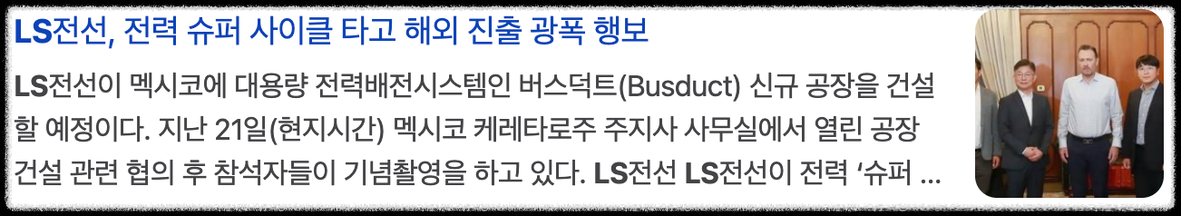 현재 LS 관련 호재인 뉴스를 보자면 다음과 같습니다.