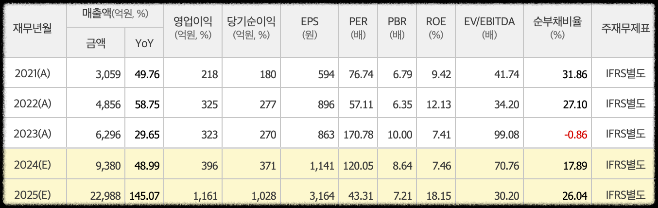 코스모신소재의 주가 결론을 추정실적 컨센서스를 보면서 이야기해보도록 하겠습니다. 2차전지 상승랠리일때도 매출액이 2021년부터 많이 상승을 하였으며, 2024년인 현재 매출액은 3배 , 영업이익도 꾸준하게 상승하는 것을 알수있습니다.