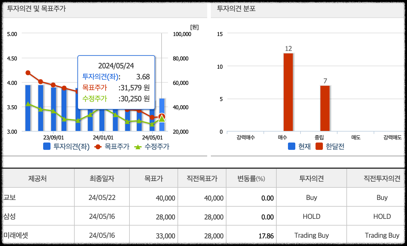이번주를 지켜보고 하락이 유지되지않고 상승이 유지된다면 교보증권에서 발표한 목표주가인 40,000원까지 상승할 것으로도 보이지만, 금주 주가 움직임을 꼭 살펴보고 대응을 하면 더욱 좋을 것으로 보입니다.