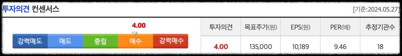 그중 KB, 신영, 현대차증권은 140,000원에서 150,000원까지 목표가를 발표하였고 투자의견도 매수를 더욱 유지시켰습니다.