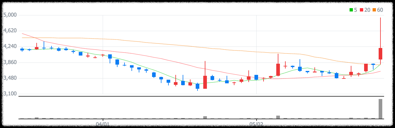 2023년 연말부터 상승을 하고 물량을 소화하는 듯한 주가 움직임을 보여주지만, 차트상으로만 보았을때는 이동평균선이 모아지는 것으로 보아서 단기로는 상승을 할수있지만, 어떤 재료와 호재로 상승을 하는지도 살펴보아야 할 것으로 보입니다.