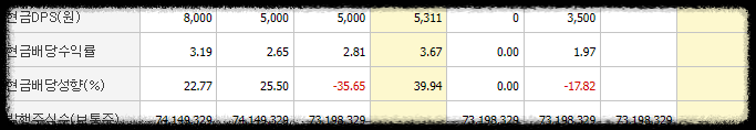 2021년에는 1주당 연간 배당금을 8,000원, 2022년 5,000원, 2023년 5,000원, 2024년 5,311원(추정)으로 발표를 하였습니다.