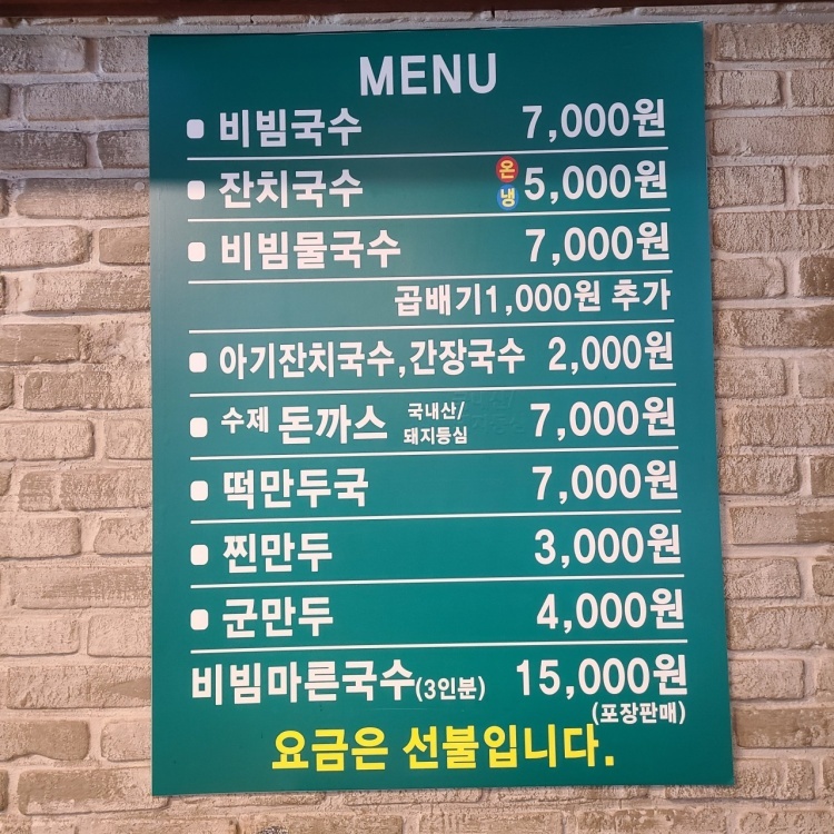 일단 메뉴판은 위와같이 비빔국수, 잔치국수, 비빔물국수 나머지는 돈까스 국수, 만두종류들이 있네요!