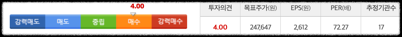 총 17개의 증권사에서 평균 목표주가는 247,000원으로 발표를 하였으며, 현재보다 다가오는 분기와 금리인하로 인한 수혜를 받을 것으로 보이며, 목표가를 상향하였습니다.