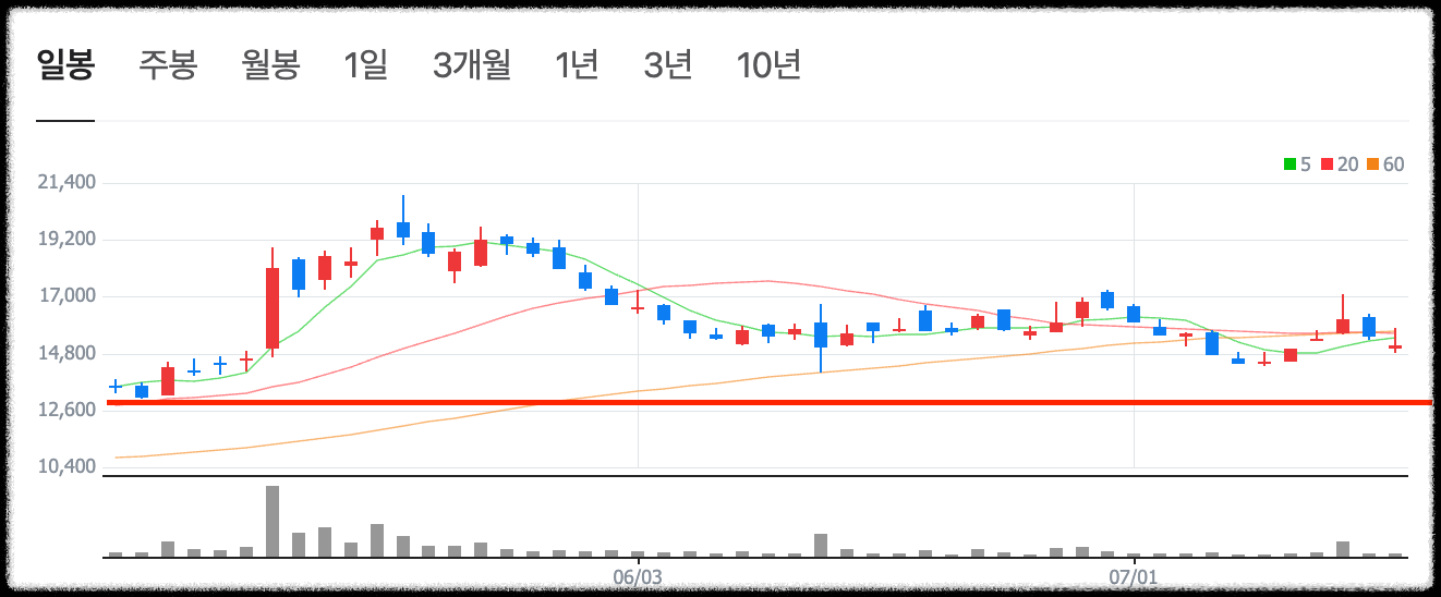 하지만 이 부분이 정확하게 정황이 드러난 것이 아니기 때문에 주가 결론에 대해서는 정답을 내릴 수 없는 상황이며, 현재 주가로 보았을 때는 14,000원이 지지선으로 작용을 하고 있어 아래로 하락을 하게 되면 더욱 큰 하락이 있을 것으로 보입니다.