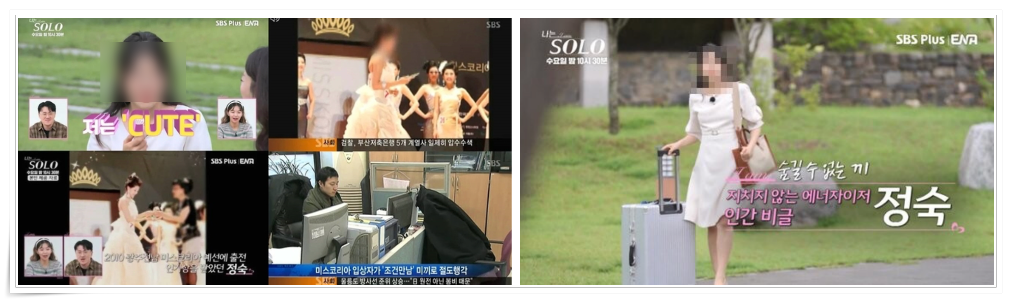 위 사진을 보면 미스코리아때 입상받은 부분이 절도행위를 할 때 쓰인 부분과 똑같으며, 23기 정숙은 의혹이 더 붉어져 갔습니다.