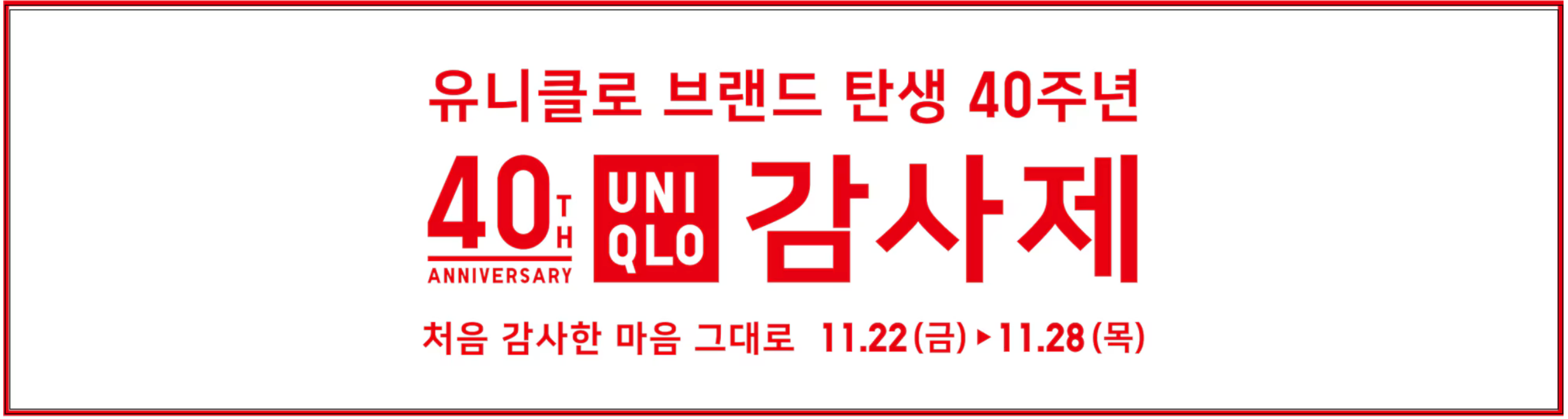 올해 브랜드 출범 40주년을 맞이한 유니클로상반기 여름 감사제에 이어 이번 하반기 겨울 감사제에서 특별한 가격의 상품과 사은품을 제공하고 다양한 프모로션을 진행할 예정입니다.
