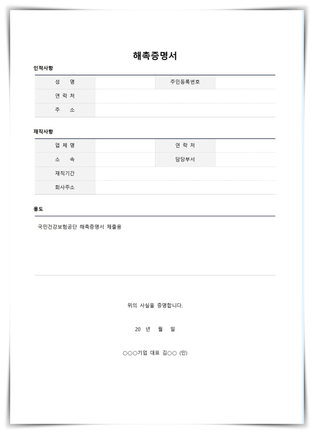해촉증명서는 주로 국민연금과 건강보험료 조정에 활용이 되며, 이 해촉증명서 양식 다운로드 방법과 함께 국민연금, 건강보험 대응 방법까지 자세히 알아보도록 하겠습니다.