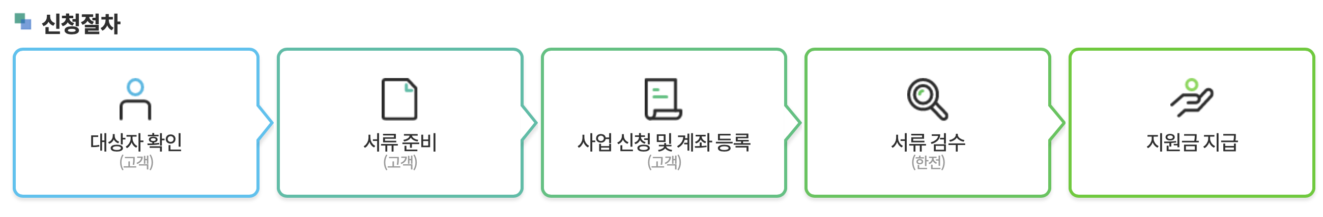 한전 고효율 지원 사업 홈페이지 접속 -> 대상자 확인 및 조회 -> 서류 준비 -> 사업신청 및 계좌등록 -> 서류 검수 후 지원금 지급으로 최대 30만 원 지원금을 받을 수 있습니다.