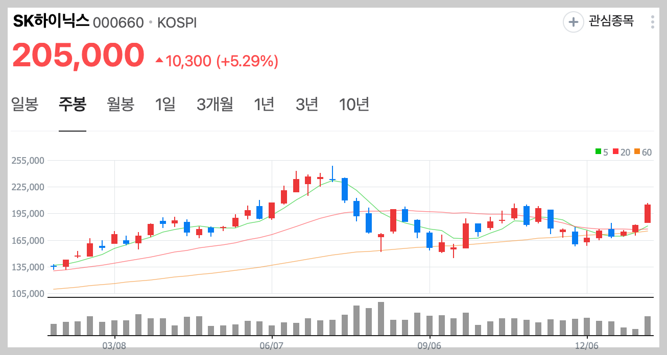 SK하이닉스 주가가 최근에 많이 상승을 하였습니다. 현재 주가는 삼성전자보다 상승폭이 커서 많은 사람들에게 관심을 받고 있습니다.