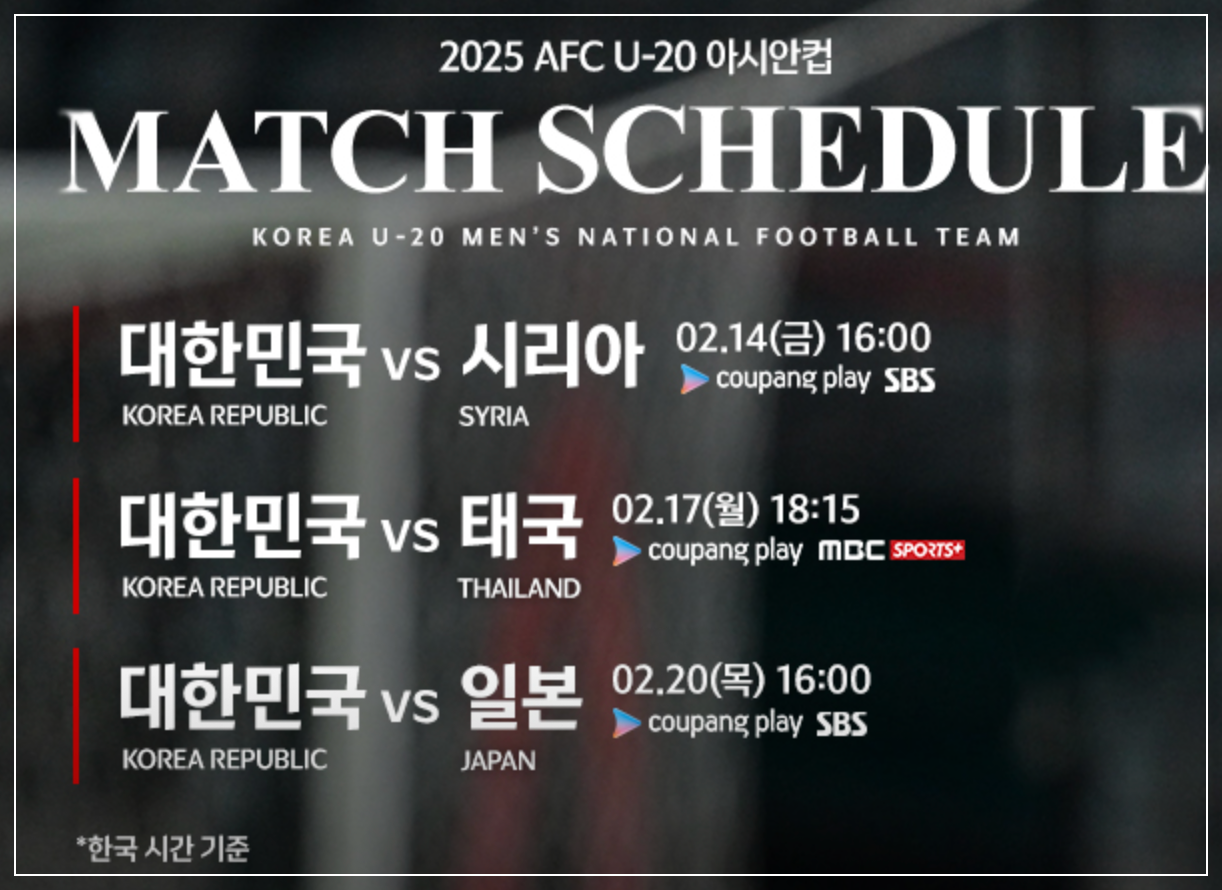 2025 AFC U-20 아시안컵 대한민국 vs 태국 경기 일정, 중계 방법, 관전 포인트